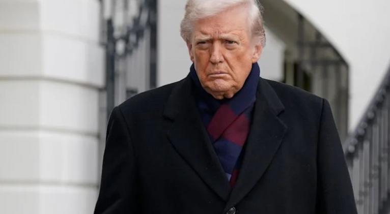El presidente Donald Trump habla con periodistas mientras parte del jardín sur de la Casa Blanca, el sábado 13 de diciembre de 2025, en Washington, camino a Baltimore para asistir al partido de fútbol entre el Ejército y la Marina. (Foto AP/Jose Luis Magana)