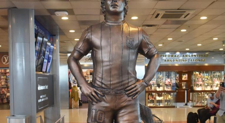 Una estatua en homenaje al legendario futbolista Diego Armando Maradona fue presentada este miércoles en el Aeropuerto Internacional de Ezeiza, en la provincia de Buenos Aires, según informó Aeropuertos Argentina 2000, la empresa que opera el principal aeropuerto del país.