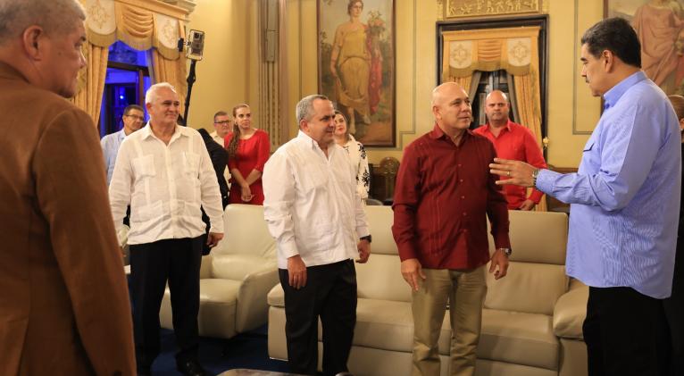 Al recibir al miembro del Buró Político del Partido Comunista de Cuba, Roberto Morales, en el Salón Simón Bolívar del Palacio de Miraflores, sede de Gobierno, el mandatario bolivariano envió un saludo al líder de la Revolución cubana, Raúl Castro, al presidente Miguel Díaz-Canel y al pueblo de la isla.