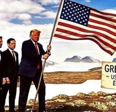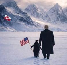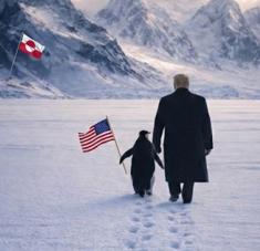 Las atrocidades cometidas por los mandamás estadounidenses, suman no menos de 200 años metidos en algún tipo de guerra de conquistas. En todo caso lo que cambia ahora es la forma en que estas fechorías se comunican, donde sobra el cinismo y el descaro. Imagen falsa de Trump poniendo una bandera de EEUU en Groenlandia@realDonaldTrump