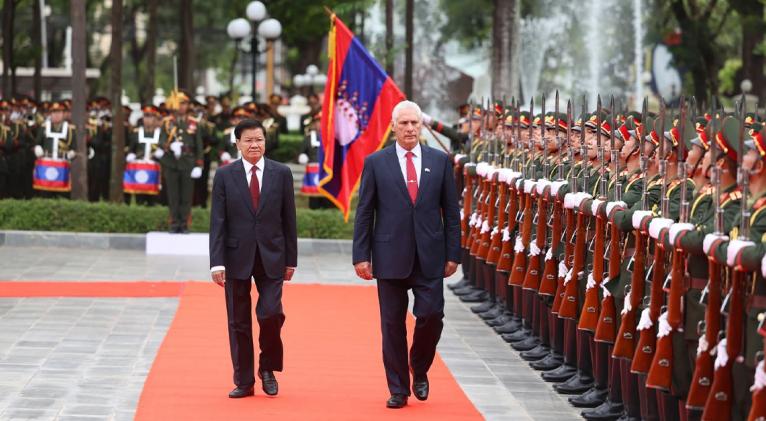 On the first day, President Díaz-Canel was welcomed at the Presidential Palace in Vientiane by the Lao President and General Secretary of the Lao People’s Revolutionary Party, Thongloun Sisoulith.