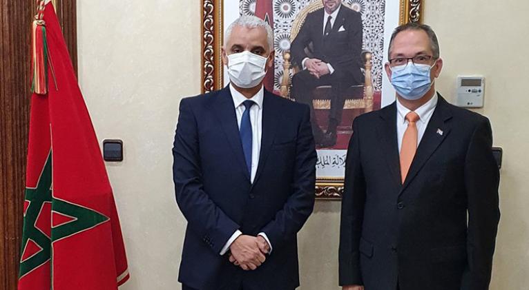 During a meeting between Cuban Ambassador Javier Domokos Ruiz and Moroccan Health Minister Khalid Ait Khalet, the two parties reviewed the actions taken in each country to fight the SARS-CoV-2 coronavirus, which causes Covid-19.