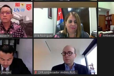 Speaking at the High Level Forum on Culture of Peace, the ambassador referred to the fact that despite the health crisis, unilateral coercive measures continue to be applied, contrary to the UN Charter and International Law.