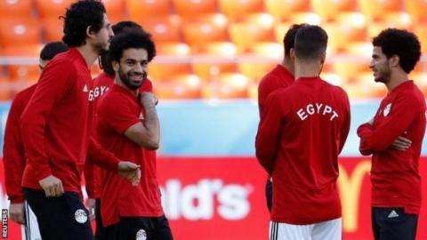 Egypt forward Mohamed Salah is on the bench for Friday's World Cup opener against Uruguay in Yekaterinburg.
