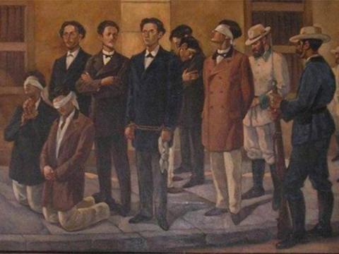 The eight students sentenced to death were led to La Punta esplanade, with their hands cuffed and a crucifix between them, where the execution took place.