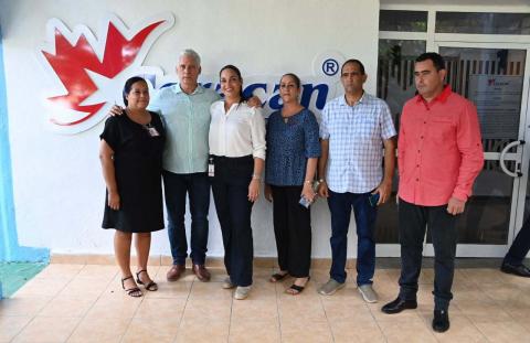 The tour began in the Cotorro municipality, where Díaz-Canel assessed operations at the Conrado Piña Base Business Unit, part of the state-owned rubber manufacturing company Poligom. Management detailed strategies to reduce import dependency and expand production lines, including solar panel gaskets and oil spill containment barriers.