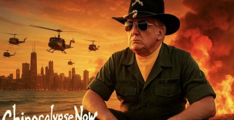 Trump publicó una imagen de parodia de la película "Apocalypse Now" en la que se podía ver una bola de fuego mientras helicópteros sobrevuelan la ciudad.