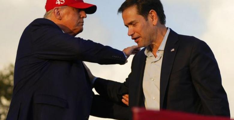 Marco Rubio reverencia a su daddy Trump. Foto Rebecca Blackwell AP