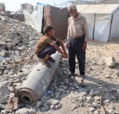 Autoridades israelíes anunciaron la reapertura de un paso fronterizo en el norte del enclave para que ingrese ayuda humanitaria. En la imagen, un niño sobre un misil sin detonar en la ciudad de Gaza. Foto: Afp