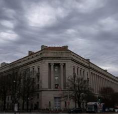 El Departamento de Justicia de EEUU, en Washington, en una imagen del 19 de febrero de 2020 (Drew Angerer/Getty Images North America/Getty Images via AFP)