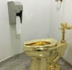 La controvertida obra del artista italiano Maurizio Cattelan, "America", que pesa más de 100 kilogramos. ANSA