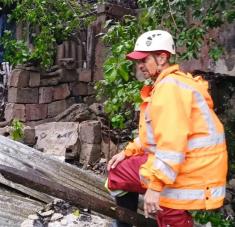 Fuerzas de rescate y salvamento acudieron al sitio del derrumbe. Foto: Tomada del muro de TV Santiago en Facebook.