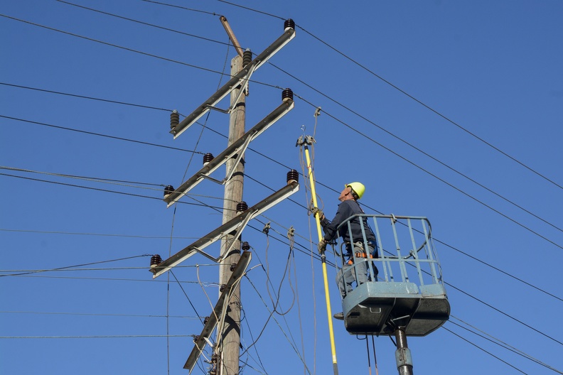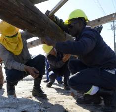 Linieros de Cienfuegos en acciones de recuperación de redes eléctricas, afectadas por el paso del huracán Ian, en Pinar del Río, Cuba, 1 de octubre de 2022. ACN FOTO/ Rafael FERNÁNDEZ ROSELL