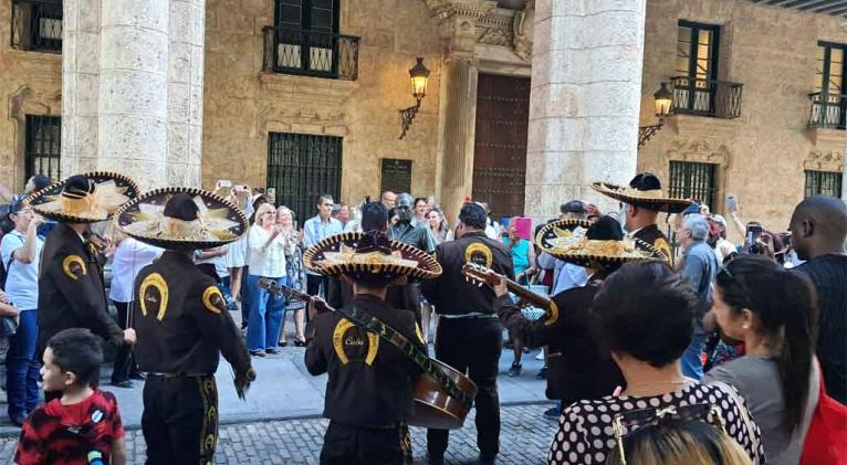 El acto conmemorativo inició con una caminata musical al ritmo de mariachis hasta la estatua del fallecido historiador de La Habana y fundador de la institución, Eusebio Leal, ubicada en la Calle de Madera de la Plaza de Armas, en el Centro histórico de la capital.