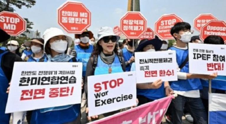 Cientos de personas protestan en Corea del Sur por visita de Biden