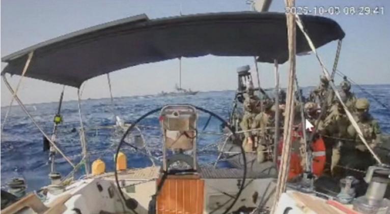 Captura de pantalla de video transmitido en vivo que muestra a las fuerzas de la marina israelí acercándose al barco Marinette Global Sumud Flotilla. /Handout vía REUTERS