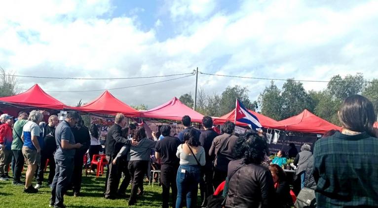 El alcalde de la comuna de Pedro Aguirre Cerda, Luis Astudillo, el diputado Boris Barrera y el candidato presidencial Eduardo Artés estuvieron entre los participantes en el evento Un abrazo por Cuba.