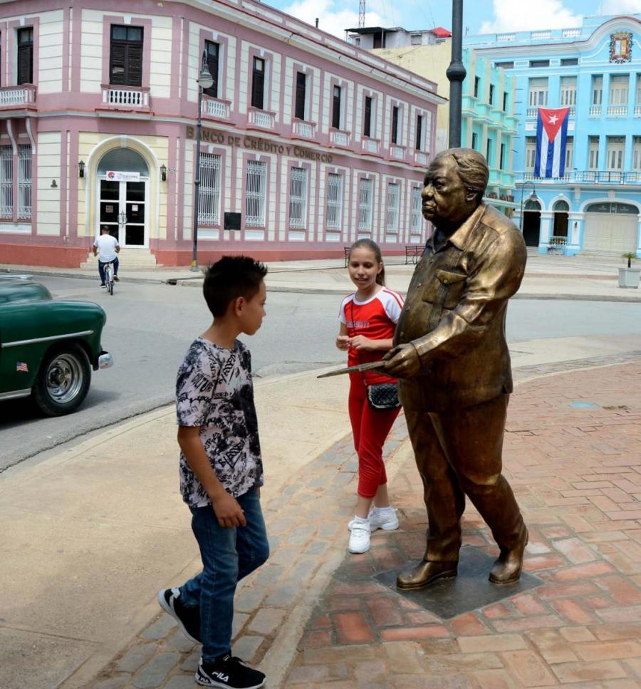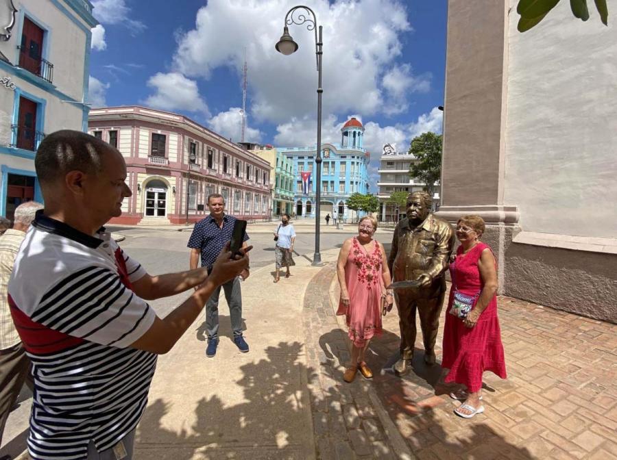 El lugar de colocación devino enseguida en punto de reunión para fotos de personas ávidas de captar su imagen junto a la de aquel mulato, cubano, rellollo e insofocable humorista, y quien comenzó a forjar en Camagüey su extraordinario legado poético y periodístico.