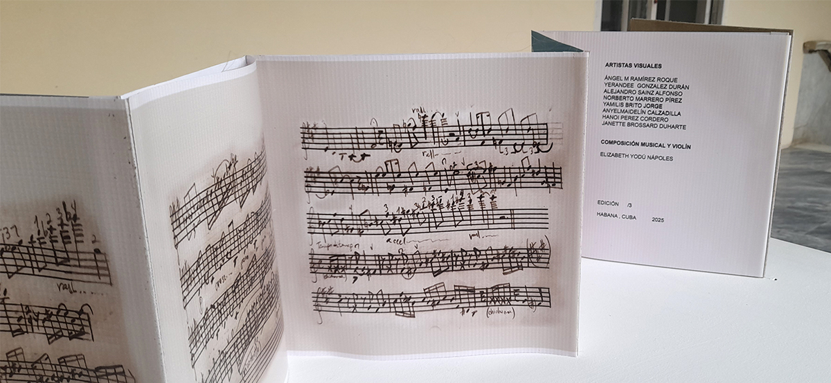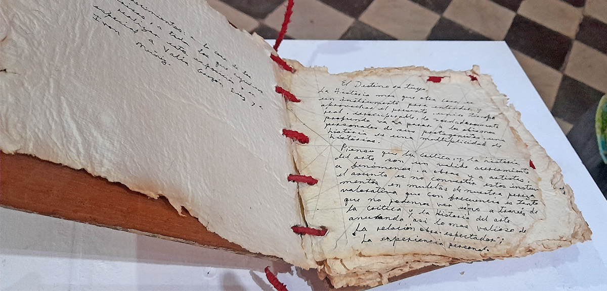 La exposición colectiva Lecturas Verticales ofrece una exploración del Libro Arte en Cuba a través de múltiples lenguajes y formas expresivas. Reúne a diversos artistas que, desde la visualidad y la experimentación, transforman el libro en un espacio de creación y reflexión artística. En la imagen, detalle de la obra de Yunior la Rosa. Fotos: Del autor