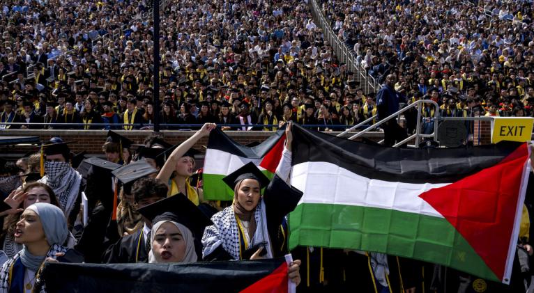 Grupos de estudiantes interrumpieron este sábado la ceremonia de graduación en la Universidad de Míchigan en Ann Arbor, como protesta contra la guerra en Gaza y en apoyo a Palestina, informa Associated Press.