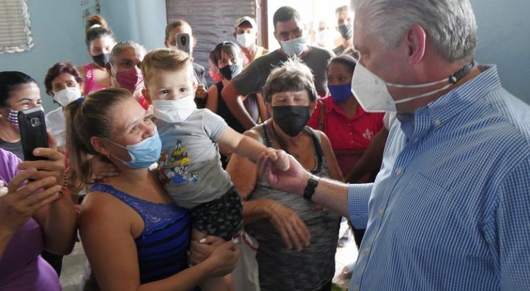Hasta allí llegó Díaz-Canel, que fue acogido por una pequeña multitud de residentes que le dio gracias, cosa que él rechazó: «las gracias hay que dárselas a la Revolución, estas son obras de la Revolución, no mías», les dijo.