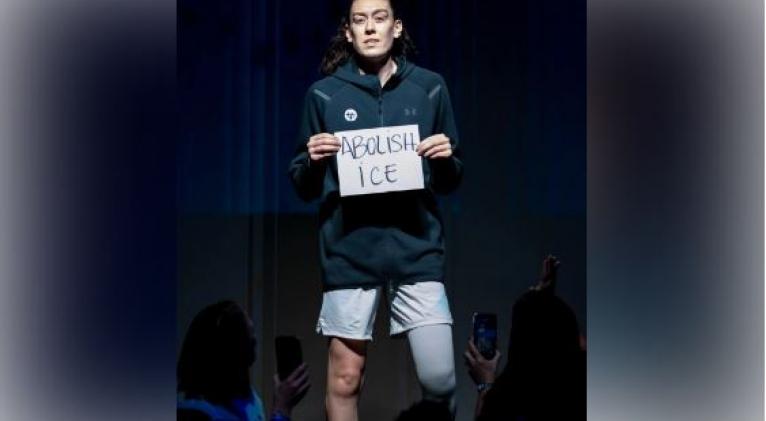 La estrella del baloncesto Breanna Stewart protestó con un letrero en el que pidió 'Abolir ICE' (Servicio de Inmigración y Aduanas) antes de un juego en Miami tras la muerte el sábado de un ciudadano estadounidense que recibió disparos de la Patrulla Fronteriza en Minnesota.
