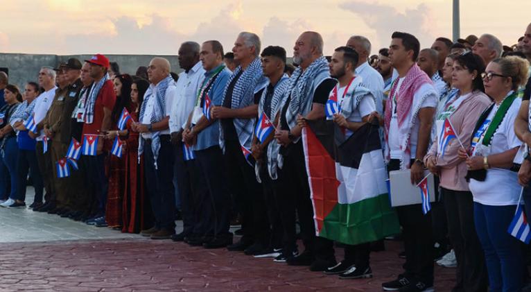 Con la presencia de Miguel Díaz-Canel Bermúdez, Primer Secretario del Comité Central del Partido Comunista de Cuba y Presidente de la República, tiene lugar en la Tribuna Antiimperialista José Martí el acto que reafirma la solidaridad de la isla con el pueblo de Palestina.