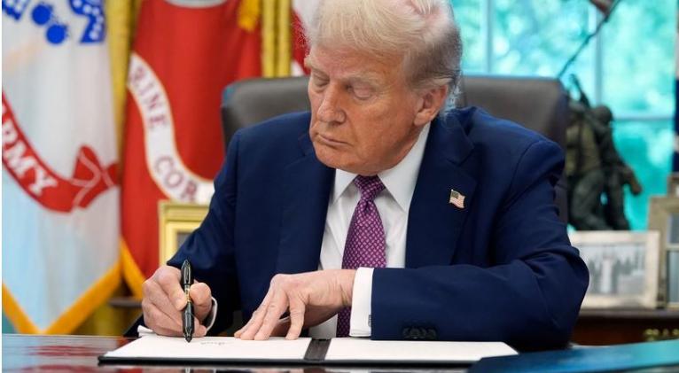 El presidente de EE.UU., Donald Trump, firma órdenes ejecutivas en la Oficina Oval de la Casa Blanca en Washington, D.C., el 5 de septiembre de 2025. Foto: Ap