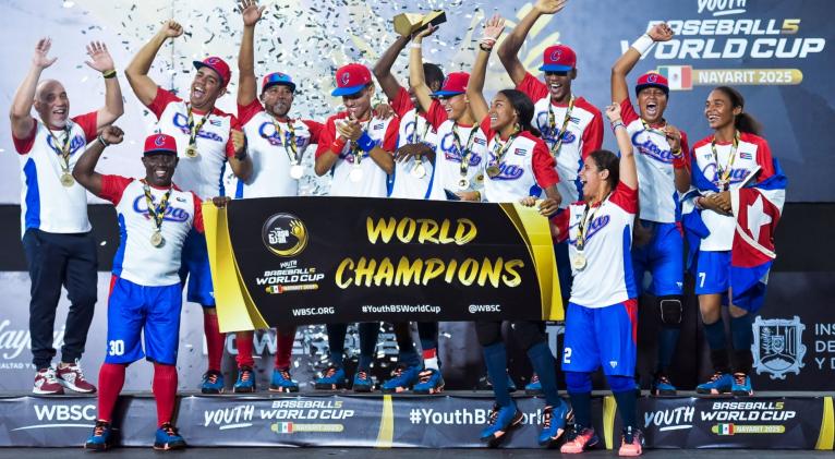 El equipo cubano ganador de la corona en la Copa Mundial Juvenil de Baseball5 de Nayarit 2025, en México, regresó este martes a la Isla, donde fue recibido en el aeropuerto Internacional José Martí, por la vicepresidenta del INDER, Teresa Yamila Méndez, junto a otros directivos del deporte.