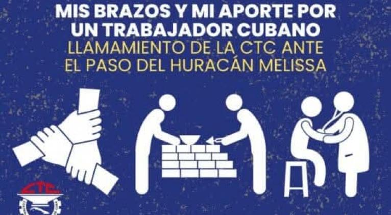 La Central de Trabajadores de Cuba (CTC) exhorta al movimiento sindical a atender con prioridad las fuerzas movilizadas de las provincias que se incorporarán a resarcir los daños causados por el huracán Melissa.