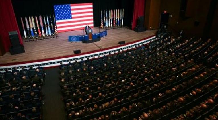 El presidente Donald Trump exhortó el martes a su cúpula militar a "vigilar el enemigo interior", tras prometer que "resucitará el espíritu guerrero" de las fuerzas armadas de Estados Unidos, en un discurso de tono muy belicoso.