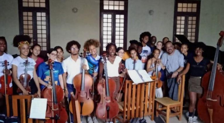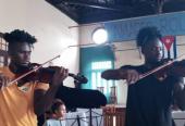 Chicos y féminas—que suman 17 corazones latiendo al unísono— compartieron con los visitantes: Iymaani en la viola, y Chris en el bajo; mientras en medio de pequeños descansos el Maestro González hablaba de esos nexos constantes entre las naciones provenientes del elemento africano y cómo este sigue siendo sostén de las más variadas sonoridades contemporáneas.