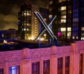 ARCHIVO - Trabajadores instalan luces en el logo de X, en lo alto de la sede de la empresa en San Francisco, el 28 de julio de 2023. (AP Foto/Noah Berger, archivo)
