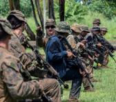 Marines estadounidenses y policías panameños realizan maniobras militares para sobrevivir en la selva, en Fuerte Sherman, Colón, Panamá, el 22 de octubre de 2025 (WALTER HURTADO)