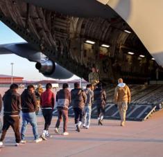 Migrantes abordan un avión militar en el que serán deportados de EE.UU. Cuenta de X de Karoline Leavitt, secretaria de Prensa de la Casa Blanca