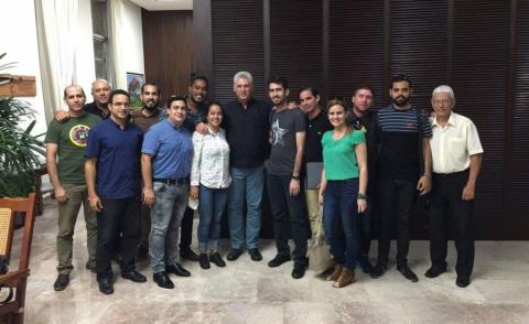 En su cuenta en Twitter, el mandatario escribió: 'Hemos tenido un grato encuentro con la nueva dirección de la Asociación Hermanos Saíz. Genuinos representantes del arte joven en #Cuba. #SomosCultura #SomosCuba'.