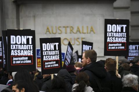 Assange fue detenido en abril de 2019 después de casi siete años asilado en la embajada ecuatoriana en Londres, donde se había refugiado tras violar las condiciones de su libertad condicional, por temor a ser extraditado a Estados Unidos.