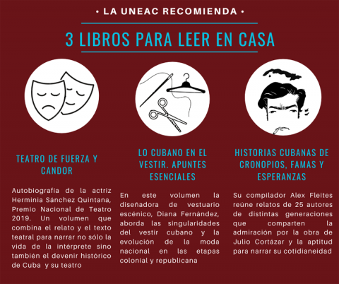 La sugerencia de estos días, lanzada a través de su página web oficial, es de los títulos Herminia Sánchez. Teatro de fuerza y candor; Historias cubanas de cronopios, famas y esperanzas; y Lo cubano en el vestir. Apuntes esenciales.
