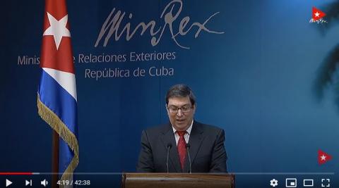 Bruno Rodríguez, ministro de Relaciones Exteriores presenta en conferencia de prensa el Informe de Cuba sobre el impacto ocasionado por la política de bloqueo de Estados Unidos durante el último año.