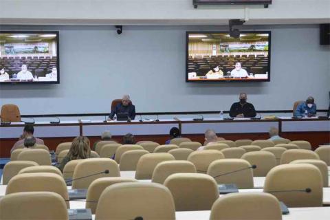 Durante esta jornada tuvo lugar también el intercambio entre la dirección del país con expertos del Ministerio de Salud Pública (Minsap), en la cual se evaluó el pronóstico para los próximos días de la pandemia, que prevé una meseta en la aparición de casos positivos a la Covid-19.