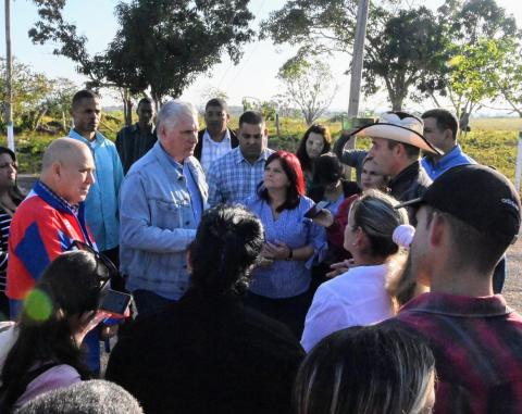 Sabemos que hay falta de recursos, pero aquí podían tener otros resultados a pesar de las carencias: por ejemplo, tienen mucho pasto que se desaprovecha para el alimento de la masa ganadera, reconoció el Presidente Díaz-Canel durante el diálogo, en el cual estuvo acompañado por el miembro del Buró Político y secretario de Organización, Roberto Morales Ojeda.