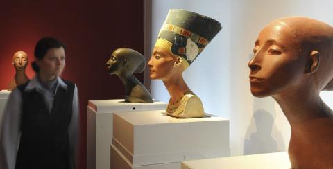 El colorido busto de la reina egipcia Nefertiti ha cumplido su primer centenario de exposición ante el gran público desde que llegó a la colección egipcia del Neues Museum de Berlín en 1924 y lo ha hecho tan "bella" como el día en que fue descubierto en una excavación.