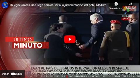 El presidente de Cuba, Miguel Díaz-Canel, arribó hoy a Venezuela para acompañar a su homólogo Nicolás Maduro en la toma de posesión ante la Asamblea Nacional (Parlamento) para el periodo 2025-2031.