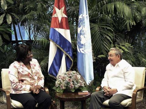 El presidente cubano, Raúl Castro, recibió hoy en La Habana a la directora de la Organización Panamericana de la Salud (OPS), Clarissa Etienne, quien realiza una visita a este país.