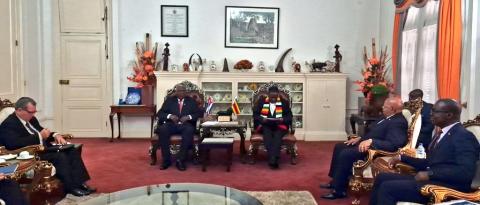 El Presidente de Zimbabwe, Emmerson Dambudzo Mnangagwa, recibió hoy al titular de la Asamblea Nacional del Poder Popular y del Consejo de Estado de Cuba, Esteban Lazo.
