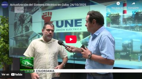 La Unión Eléctrica de Cuba estima para este viernes una afectación por déficit en la generación en el horario del Mediodía de 950 MW y en la máxima demanda de 1810 MW. El director de Electricidad, Ing. Lázaro Guerra, informó las precisiones a Bernardo Espinosa.