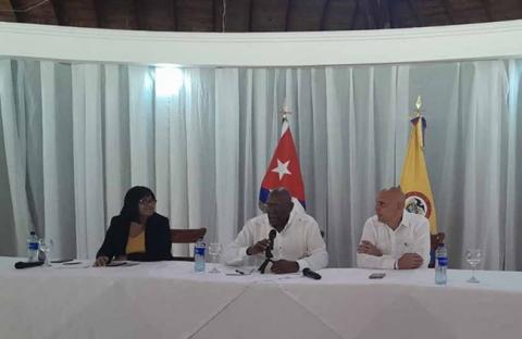 A la reunión, celebrada en la sede vacacional Los Trupillos, acudieron senadores del Partido Comunes, representantes de la bancada de la coalición progresista Pacto Histórico, líderes sindicales y más de un centenar de activistas solidarios con la isla.