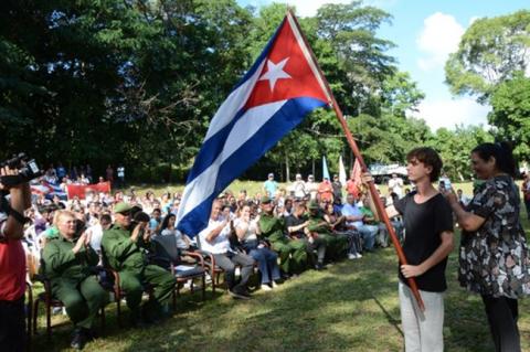 El acto, al que asistieron, además, familiares de Pedro Lantigua, campesinos y educandos de la comunidad montañosa, estuvo encabezado por Deivy Pérez Martín y Alexis Lorente Jiménez, presidenta y vicepresidente del Consejo de Defensa Provincial, respectivamente.