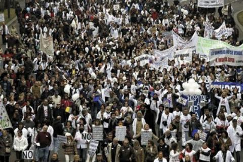 Madrid protesta nuevamente contra la política de externalización de seis hospitales este domingo, en lo que es la primera "Marea Blanca" de 2014 y que también sirve de apoyo a los trabajadores de la lavandería central que se mantienen en huelga.