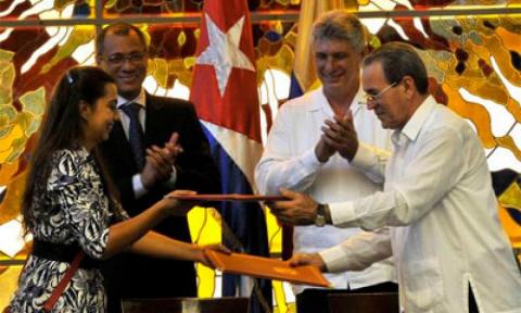 Miguel Díaz-Canel Bermúdez, miembro del Buró Político del Comité Central del Partido Comunista de Cuba (CC PCC) y Primer Vicepresidente de los Consejos de Estado y de Ministros, y Jorge Glas Espinel, Vicepresidente de la República de Ecuador, presidieron la ceremonia en la sede del Consejo de Estado.